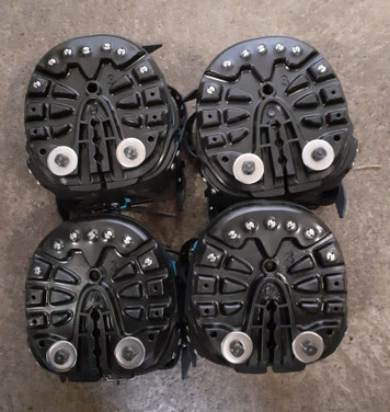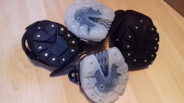 Es gibt die Möglichkeit Stollen im Trachtenbereich und Spikes im Zehenbereich zu kombinieren. Der grosse Vorteil an dieser Kombination ist, dass die Schuhe weniger schwer werden (und dadurch weniger verloren gehen). Wenn der Boden etwas tiefer wird, ist der Halt wegen den zwei Stollen besser - als nur mit Spikes.